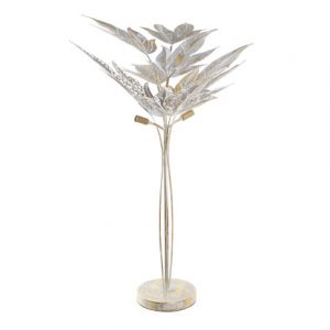 LAMPARA PIE METAL HOJAS DECAPE GRIS