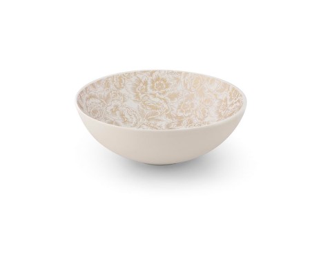 Lavabo sobre encimera ovalado en porcelana, con interior decorado con calcas cerámicas florales en oro y un exterior blanco mate. Cada pieza es artesanal, combinando elegancia y funcionalidad en un diseño único. Colección Goldsilver & Swarovski.