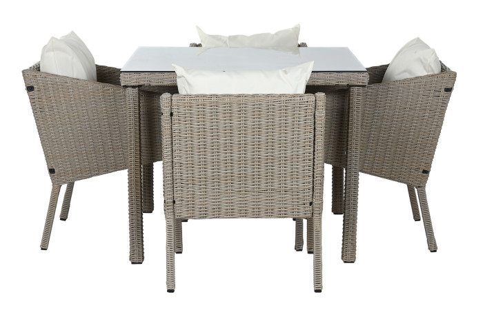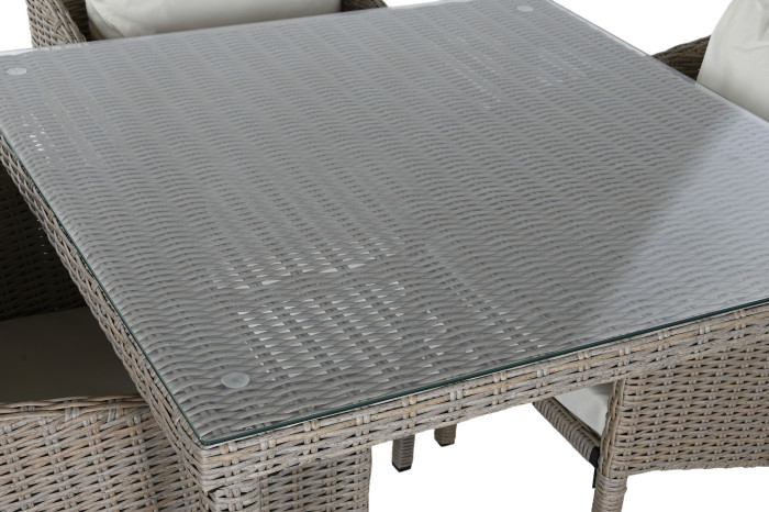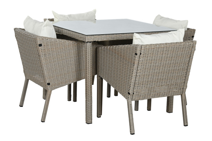 MESA SET 5 RATAN SINTETICO 90X90X72 CON COJINES