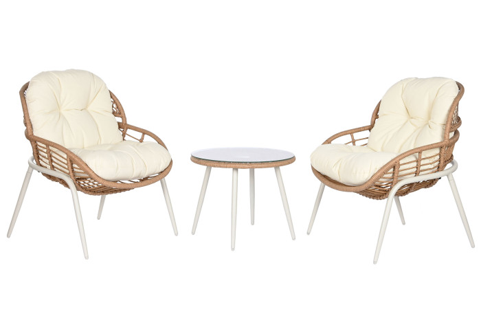 SILLON SET 3 RATAN SINTETICO METAL 55X55X47 BEIGE