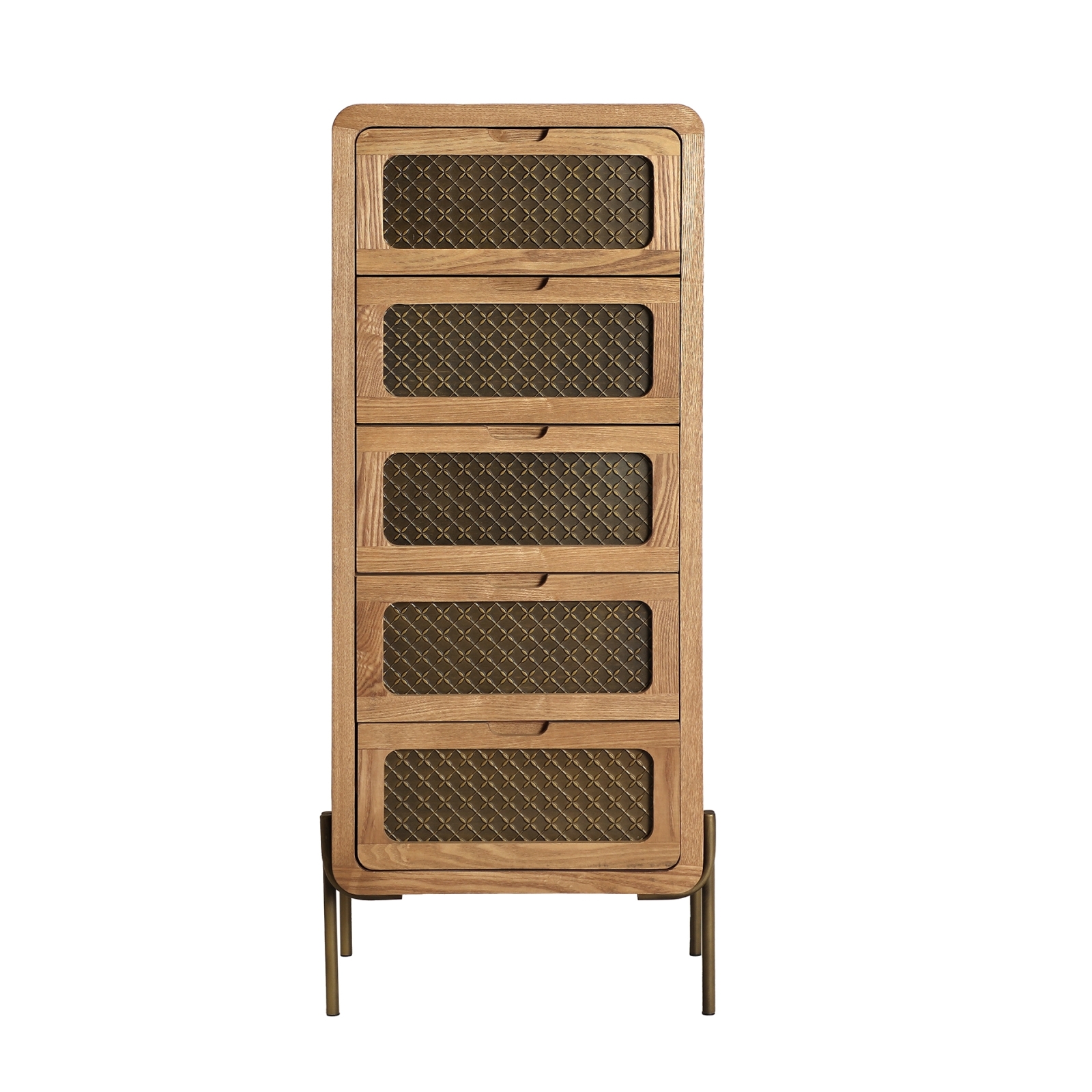 | El sinfonier Nevoy de Lastdeco es la perfecta fusión entre estilo y calidez. Esta pieza, simple pero elegante, combina madera de pino en un tono marrón claro con un entramado de aluminio estampado con motivos geométricos. Presenta una forma rectangular con bordes redondeados y se apoya sobre finas patas de aluminio en un tono oro envejecido. MATERIAL MADERA DE PINO, ALUMINIO PESO 22.15 KG |